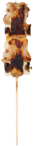 皮がついた正肉。鶏のモモ肉またはムネ肉を一口サイズに切り分け串に刺した焼き鳥の定番。肉汁好きはたまらない一品